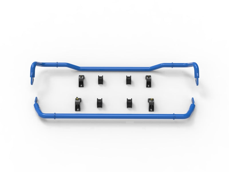 Every aFe CONTROL sway bar is CAD designed and CNC bent to strict tolerances. This insures precise fit and perfect operation. aFe Control front & rear sway bars are 3-way adjustable. This allows the driver to dial in the front and rear roll resistance to achieve the desired handling bias. The front sway bar utilizes CNC machined ends and the rear has waterjet cut plate ends. These are TIG welded to the bar in a special fixture to insure accurate hole positioning and consistent manufacturing. aFe Control includes low deflection polyurethane bushings and premium 6061-T6 aluminum black anodized billet brackets.